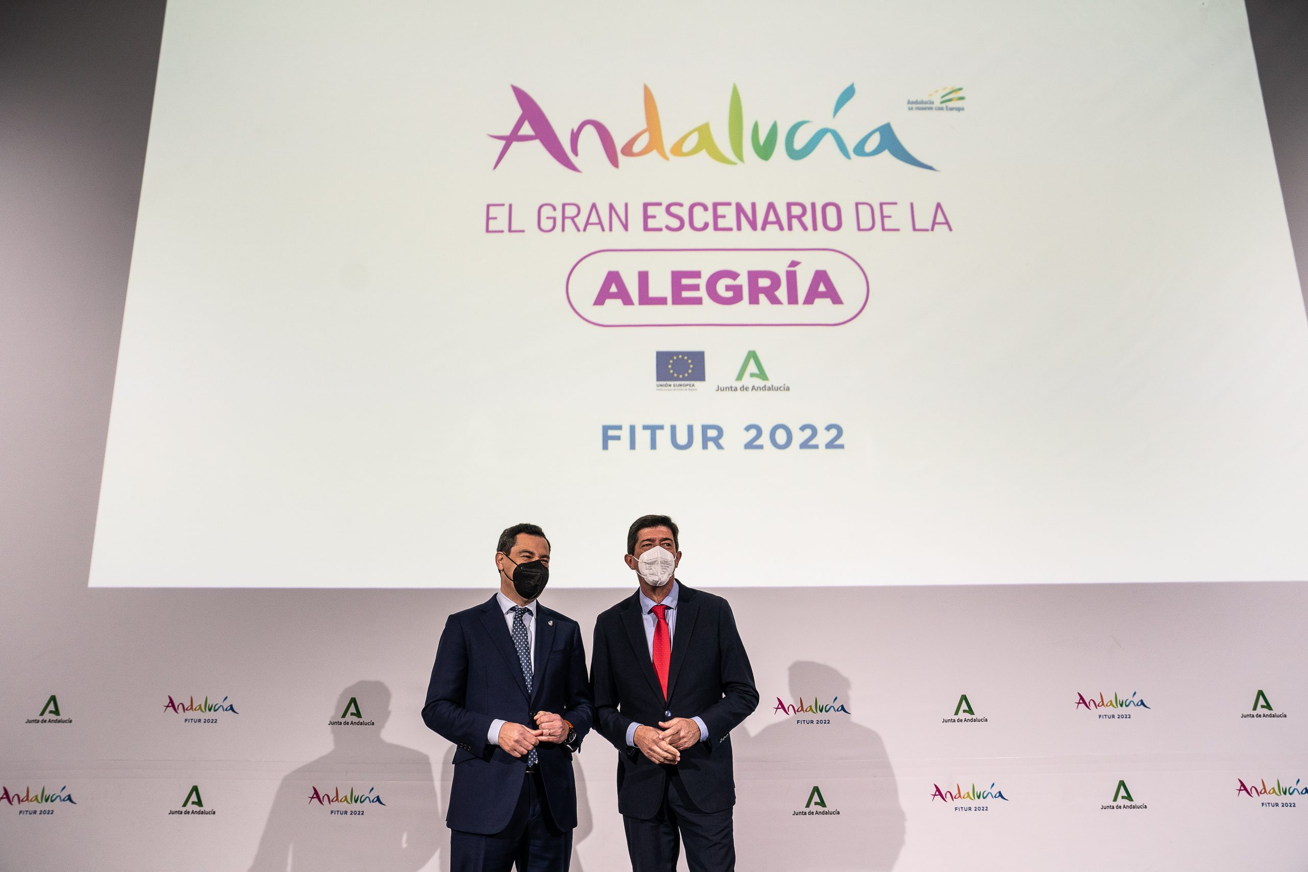 Así lo ha anunciado en una rueda de prensa conjunta el presidente del Gobierno andaluz, Juanma Moreno, celebrada en el ‘Gran escenario de la Alegría’ del Pabellón de Andalucía de la Feria Internacional de Turismo (Fitur) 2022, que ha arrancado este miércoles en Madrid, en la que ha comparecido con el vicepresidente y consejero de Turismo, Juan Marín,